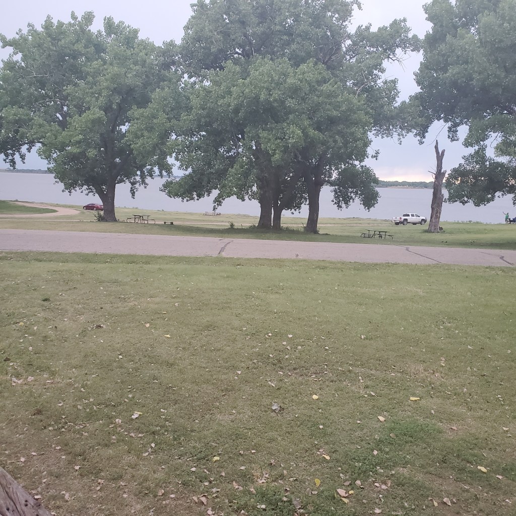 Now on the 44th day, we headed back to home base. We stayed at the same campground in the Middle of Kansas, at Kanopolis Lake State Park. We booked the site closest to the lake. Unfortunately, it stormed that evening. Everywhere we go, I want to take a picture “out our front door”, here’s the one at Kanopolis Lake Campsite #409.