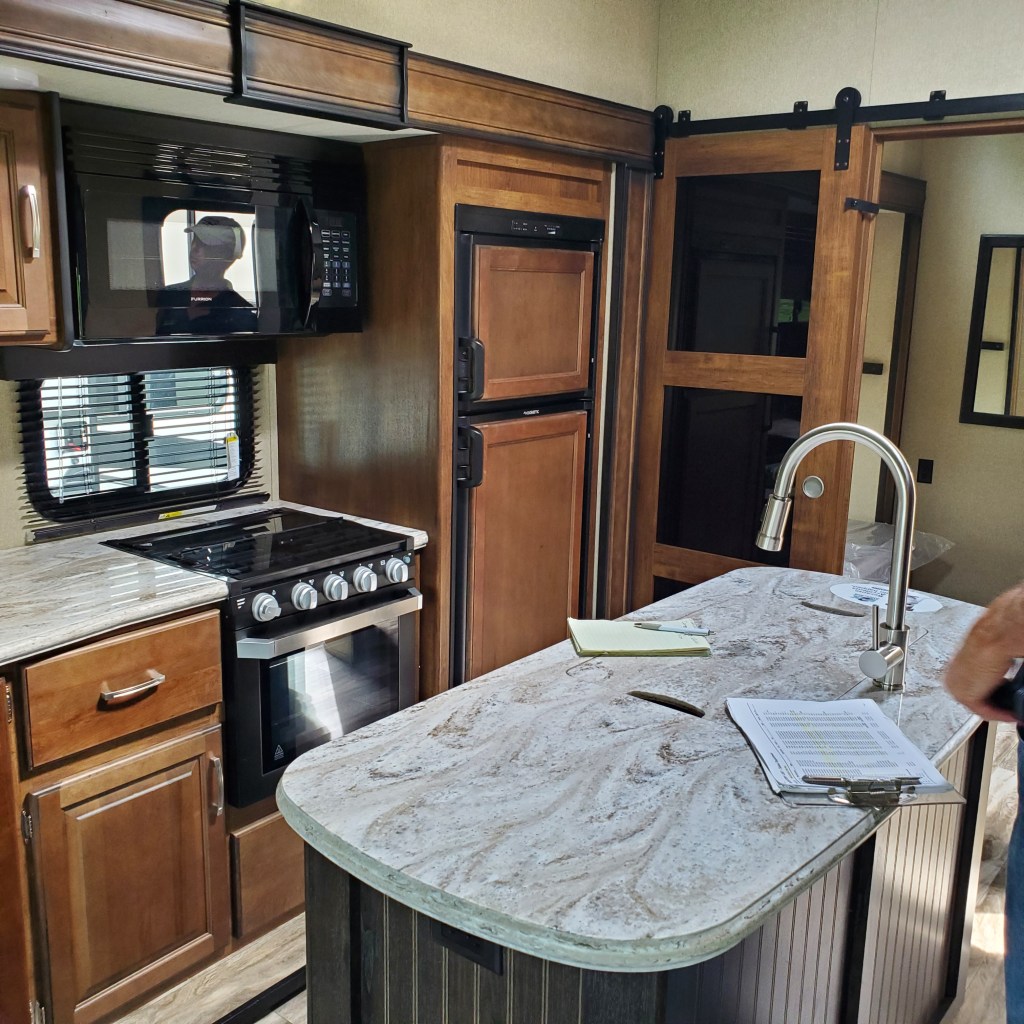 We are so extremely happy with our new fifth wheel. The construction of this RV, as compared to the travel trailer is much better. Even simple things, like the thermostat, and oven, work so much better in this RV. I know we can live much more comfortably and enjoy our life in this Fifth Wheel.
