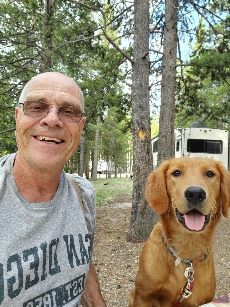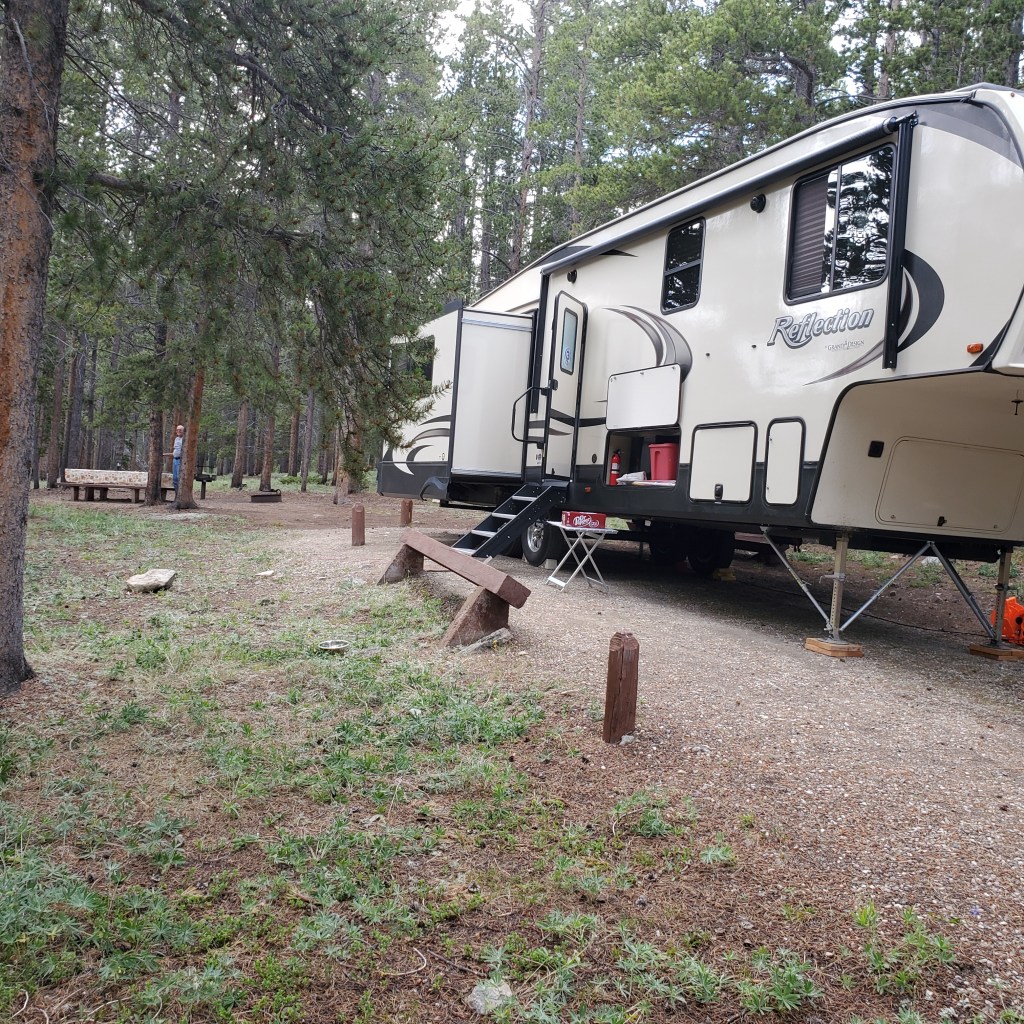 On our way from Yellowstone, then Cody, Wyoming, we headed east to Lost Cabin campground in Bighorn National Forest. It was a beautiful forest campground on top of the mountain. It did not have any hookups at all, and the pad was dirt and gravel. We loved it, even though no cell service available. We were only going to be here one night, so it was ok to be disconnected!