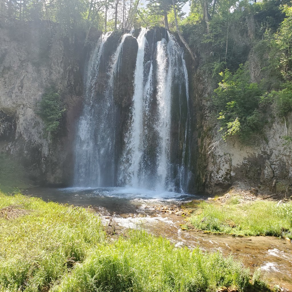 Day 2, while at Sundance, we drove to Spearfish, SD and saw Spearfish falls. I can’t say it was a hike, but rather a very nice walk along the creek and then to a gorgeous waterfall. Even the highway to get there was very scenic with pullouts to view several other waterfalls along the way. It was a nice little trip that day.