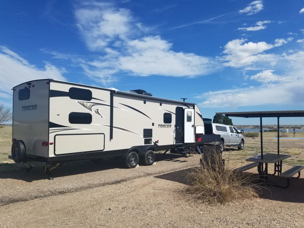 We finally decided upon a new 2018 Tracer, 29 foot, bunkhouse travel trailer, made by Forest River. At the time, we didn’t realize this was a very low end trailer, but it’s a great place for us to start. We need to determine if this lifestyle is going to work for us before spending more.