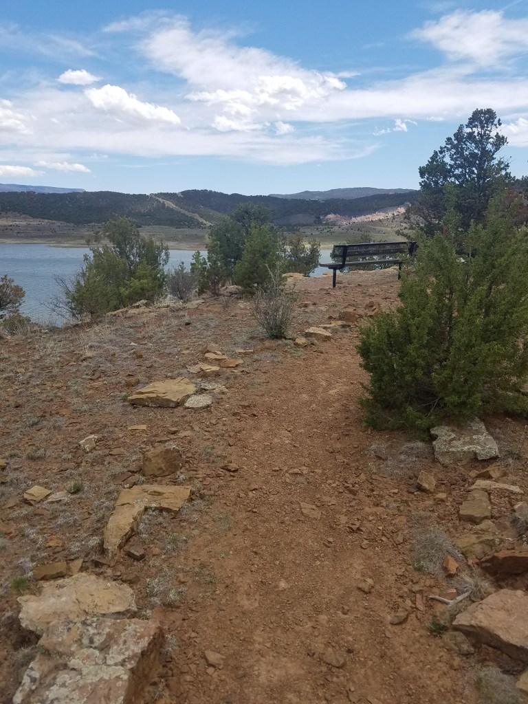 Since we wanted to “practice” the setting up and packing up we added another place to go on this trip out, so we reserved a spot at Trinidad State Park in southern Colorado. This campground was much more impressive. We had trees all around us so it felt very secluded and private. There was a 1 mile guided hiking trail out the front door of our camper. At this time we were both very much out of shape and Tony was still recovering from his surgery. The first day, he made it about a quarter of the way, while Laura walked the loop. The second day, we both did it, as there were several bench seats overlooking beautiful scenery along the way, so we could take our time!